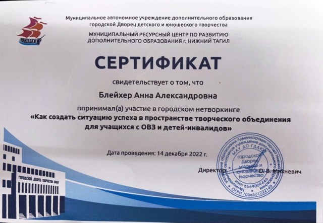 «Работа с детьми с синдромом дефицита внимания и гиперактивности как эффективный способ индивидуализации обучения», вебинар, Международный образовательный портал «Солнечный Свет» 2022г. |
